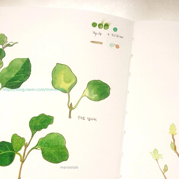 특유의 예쁜 색은 샙그린과 비리디안을 섞어 만든다.