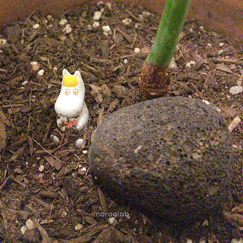 화분에 얹어둔 무민은 큰 화분에 비하니 너무 조그마해졌다.