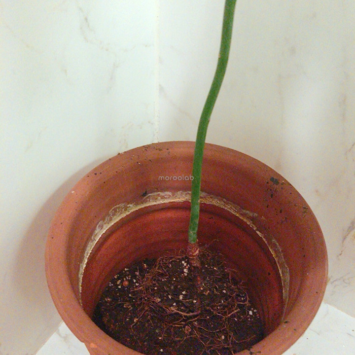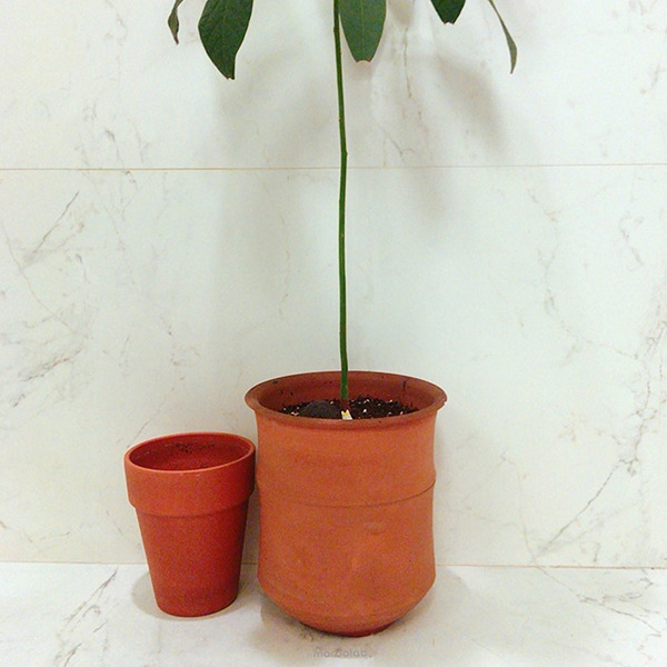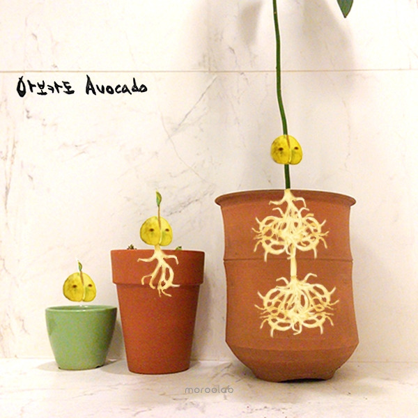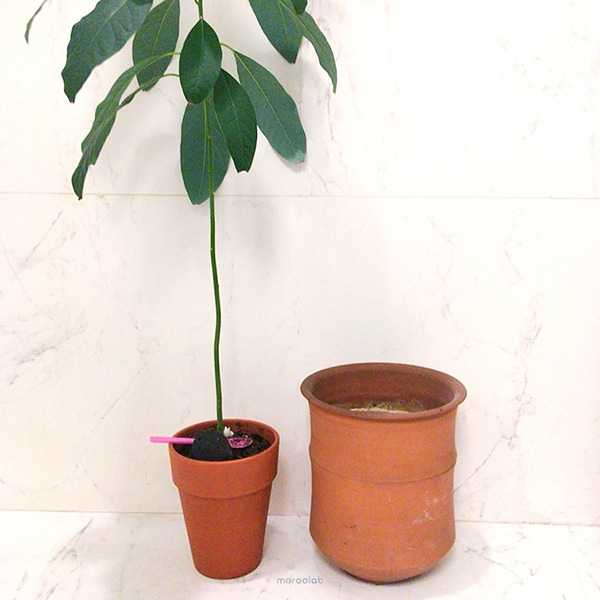 아보카도는 뿌리 성장이 꽤 빠르다. 아래로 쭉쭉 뻗기 때문에 아예 넉넉하게 기다란 토분에 옮겼었다.