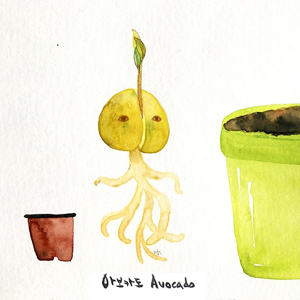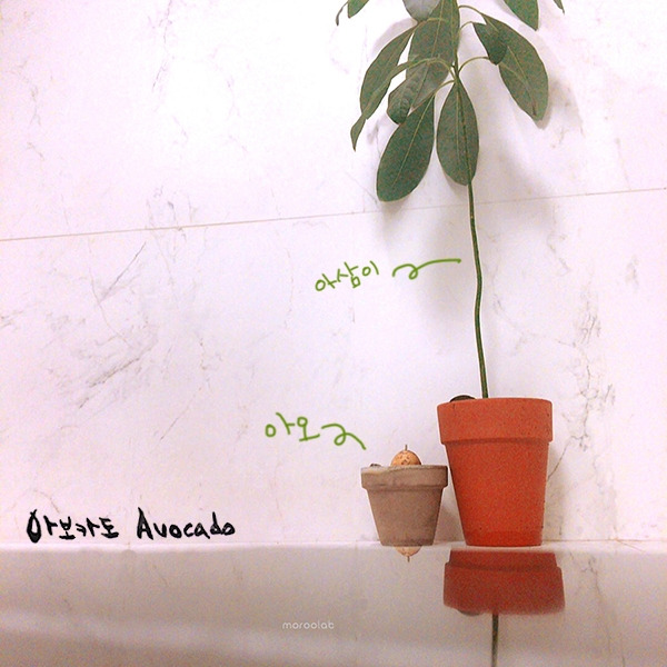 알맹이였던 아보카도 씨앗은 벌써 이렇게나 컸다.