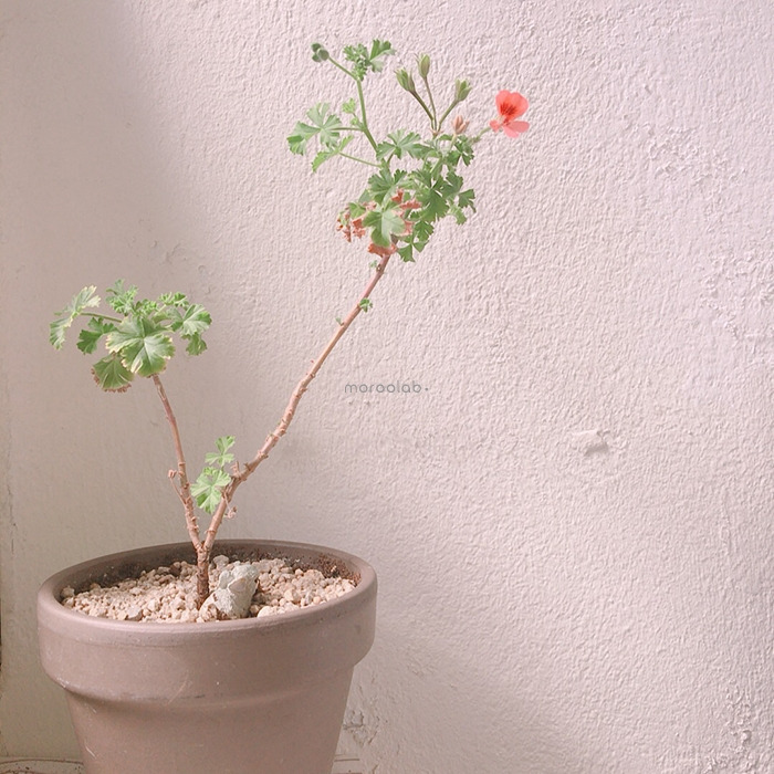 올 봄에 처음 온 작은 주황색 토분에서 약간 큰 코코아색 토분으로 옮겼어요. 제라늄은 화분이 좀 작도록 키워야 한다니, 당분간 분갈이 이사는 안 가겠어요.