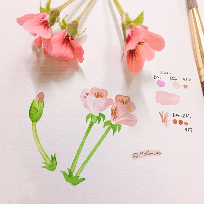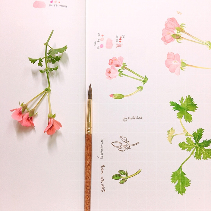 제라늄을 관찰하면서 그리는 책상 정원일기-