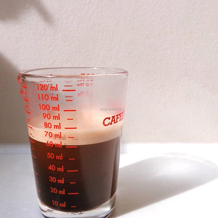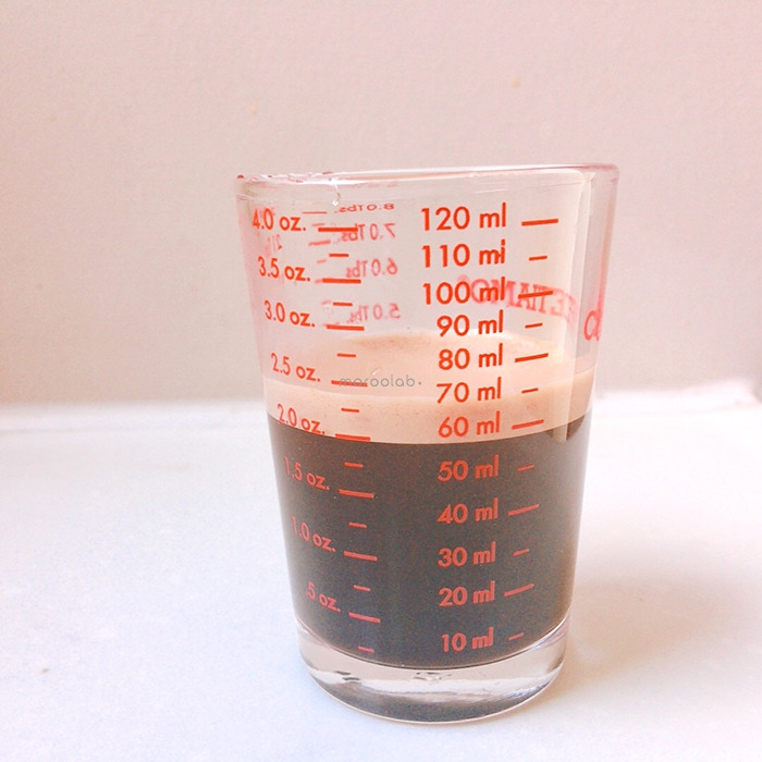 ① 90ml에서 60ml로 약 30ml는 커피 가루에 흡수된 것으로 예상된다.