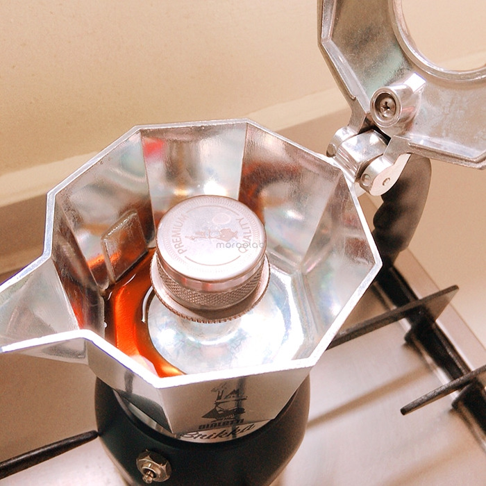 알루미늄이라는 재질이 열전도율이 높아서 빠르게 커피가 추출되지만, 물에 약하기 때문에 부식의 위험이 있다.