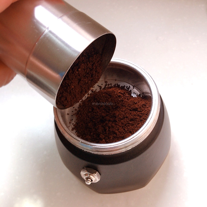 ③ 바스켓에 모카포트용에 맞게 갈린 커피를 담는다.