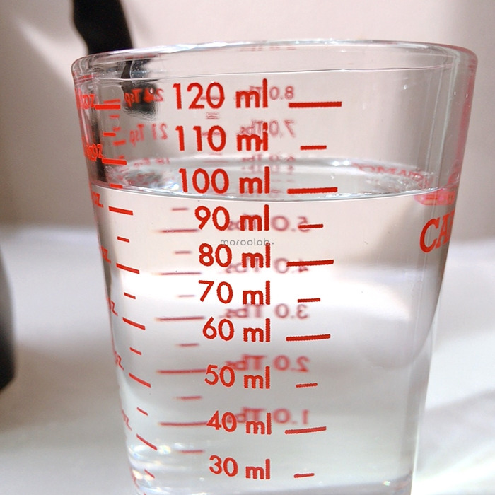 컨테이너의 튀어나온 부분이 약간 잠길 정도면 100ml 정도이다. 추출은 동일하게 60ml.