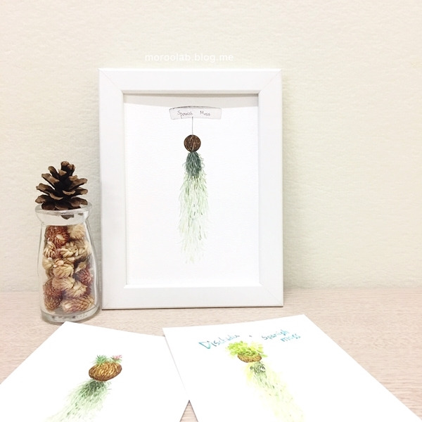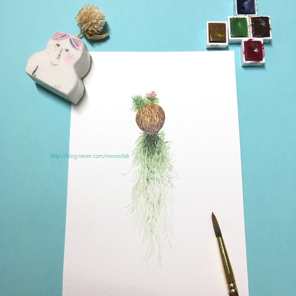 엽서나 액자 사이즈에 맞춰 종이를 준비하고 맑은 공기를 바라며 수염 틸란드시아를 그려봅니다.