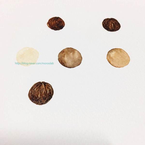 2) 아직 촉촉할 때 약간 진한 갈색으로 부분 부분 칠해줍니다.