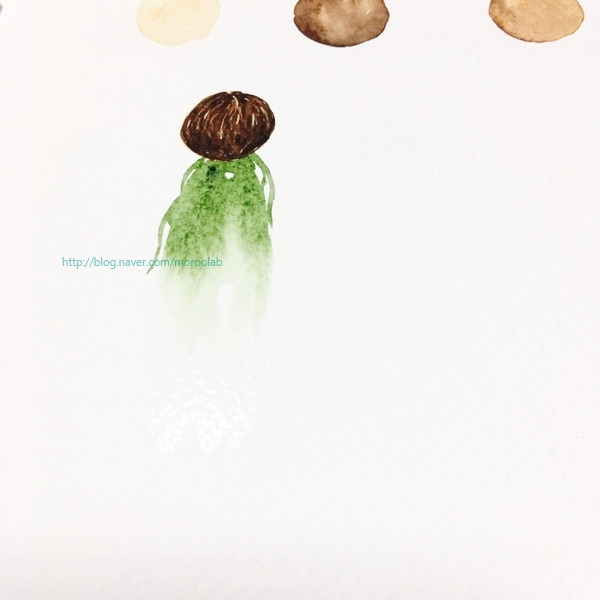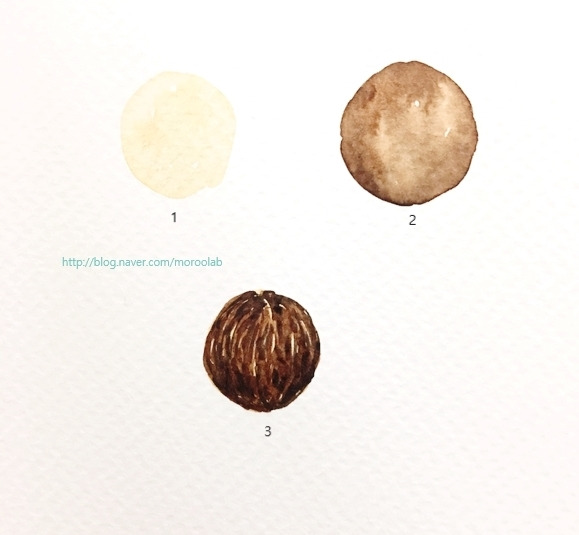 1) 붓에 물을 많이 머금은 밝은 갈색으로 동그라미.