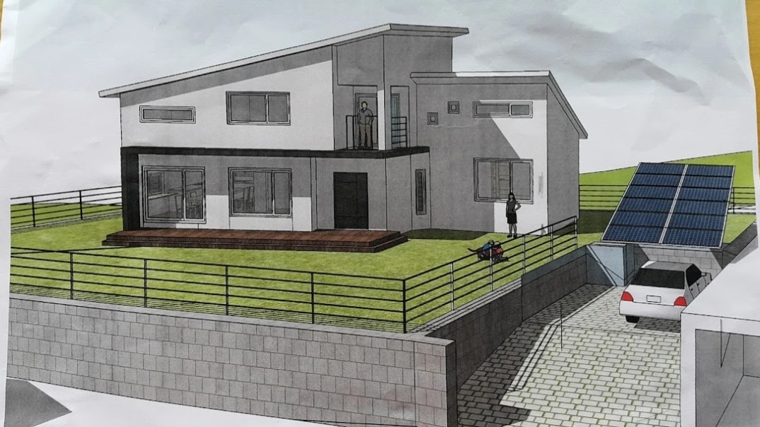 전면이 정남향을 향하도록 집을 조금 비틀었다. 잔디를 깔 남쪽 앞마당은 좁히고 북쪽, 서쪽 마당을 널찍하게 만들어서 자갈돌을 깔 예정이다.