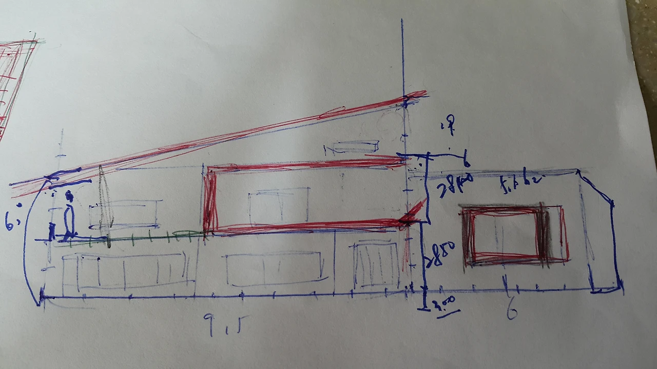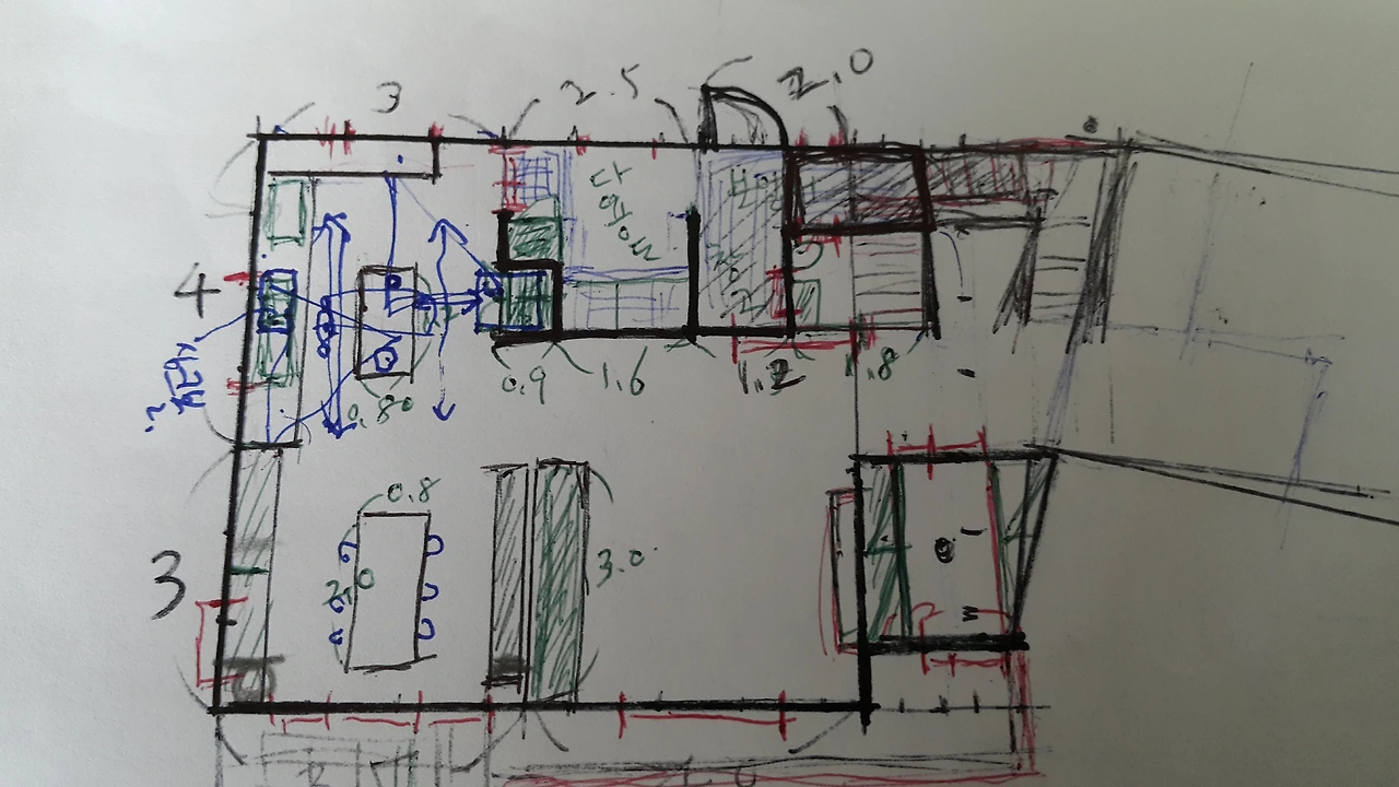 소파, 식탁등 새집에서도 사용할 기존의 큰 가구들을 감안해서 모눈종이 위에 나름 꼼꼼하게 수치를 계산했다. 안방을 제외한 일 층은 훤하게 트인 공간을 원했다. 편리하게 사용할 동선을 상상하며 수 십장은 족히 그린 것 같다. 소장님을 웃게 만든 장난 같은 그림들이 마술처럼 집이 되기 시작한다.