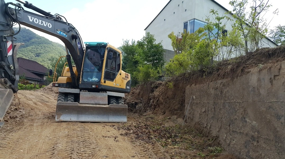 토목공사를 하면서 지하수, 우, 배수로, 지중전기선, 정화조 설치등 포클레인이 해야 하는 기초공사를 같이 진행한다.