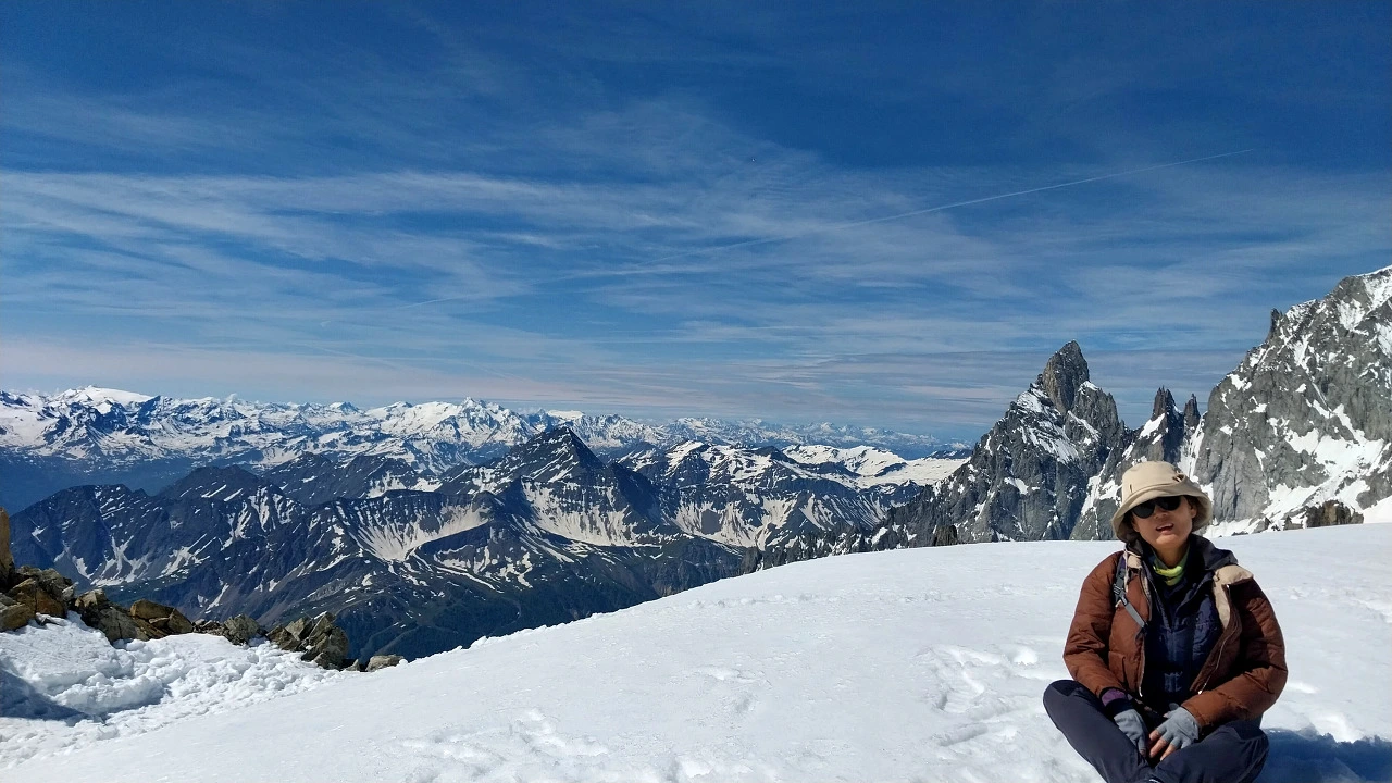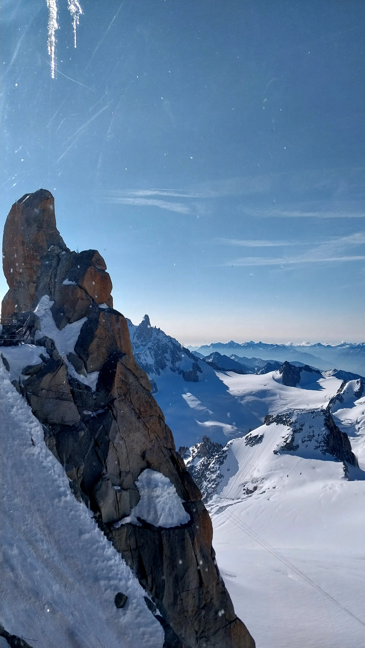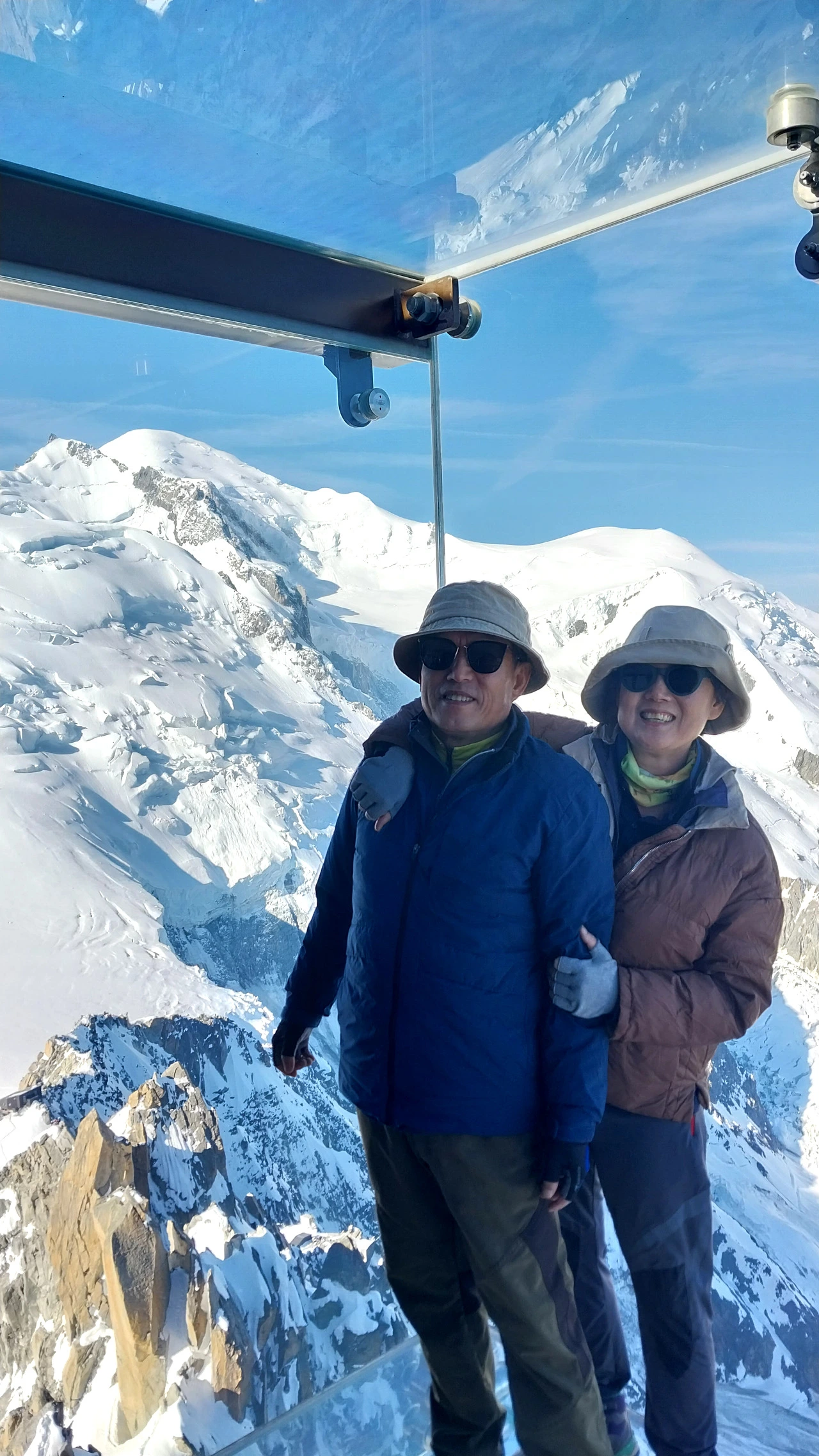 눈부신 하얀 세상에 환호한다. 글라스 사진을 찍고 여기저기 기웃거리며 설산을 즐긴다. 감탄사만 질러댈 수밖에 없는 거대한 설산 덩어리들. 이런 대자연 앞에선 누구라도 한없이 겸허해질 수밖에 없지 않을까? 얇은 패딩은 필수다. 우리가 간 날은 샤모니는 제법 더운 날이었지만 올라오니 패딩 입는 것이 알맞게 제법 쌀쌀하다