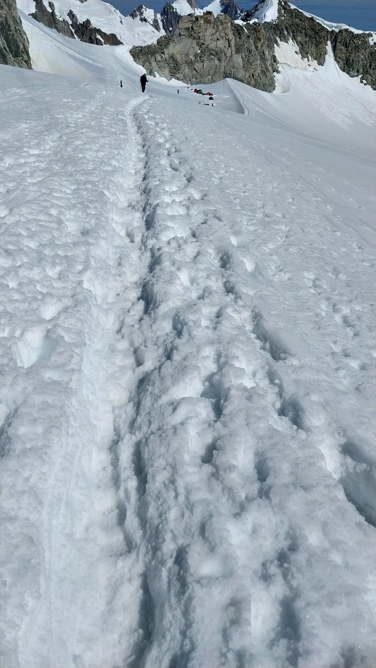 꾸르마이예르에 다가오자 눈 위를 걷는 사람들이 더 많아진다