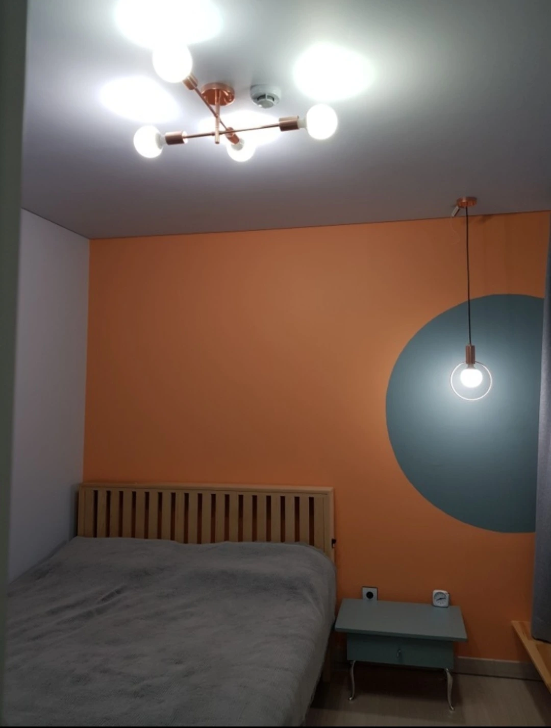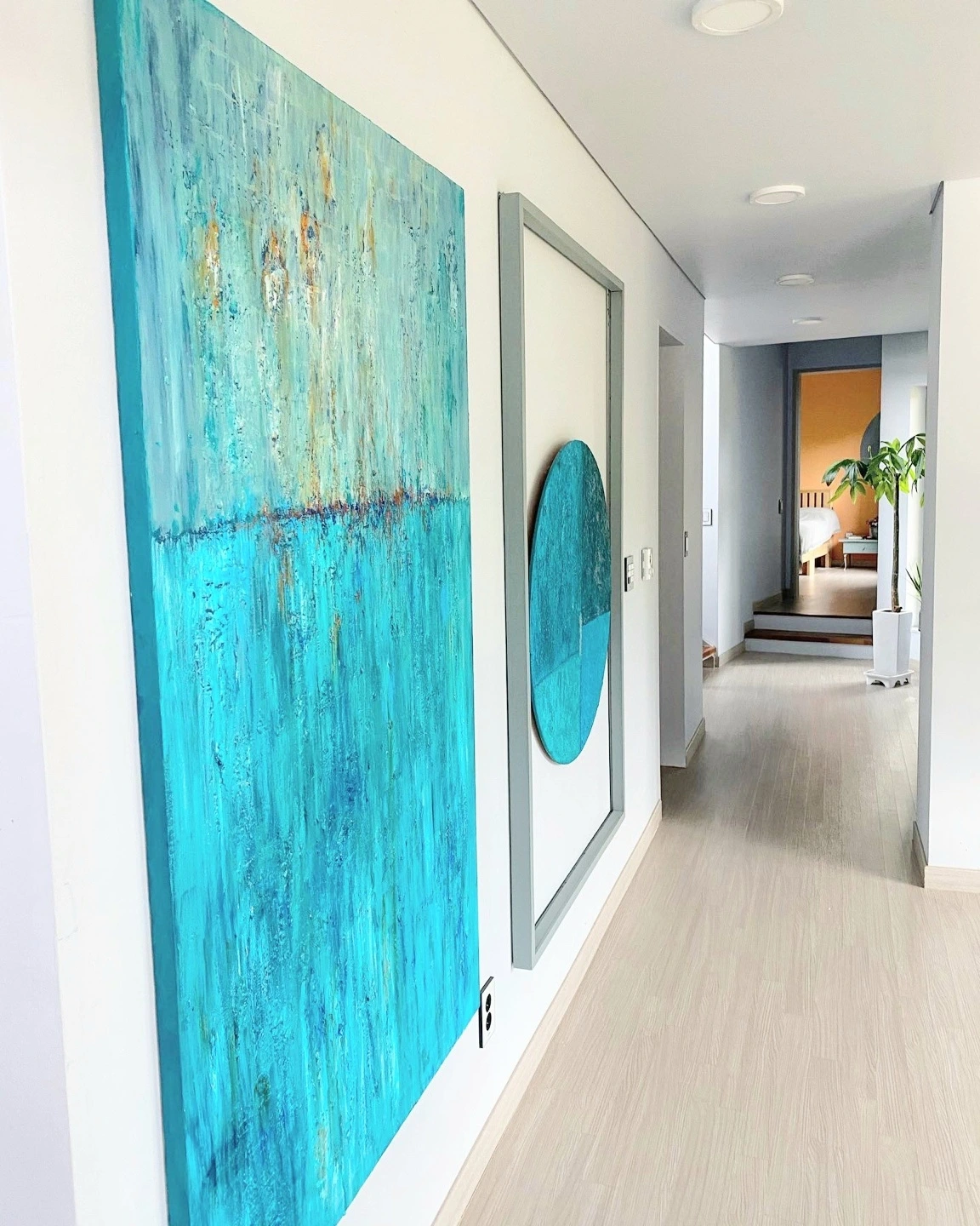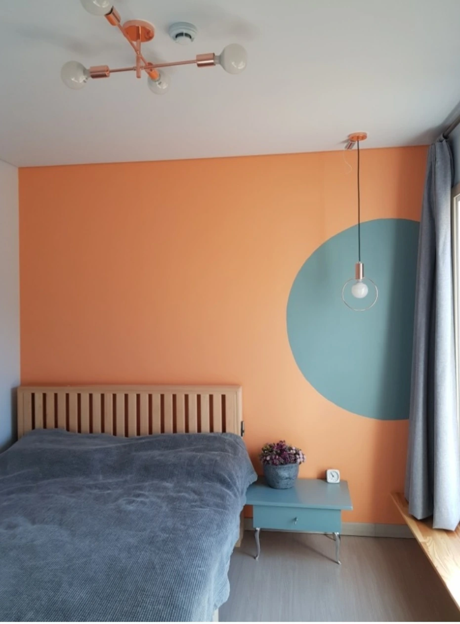 안방은 따뜻한 느낌의 주황계열과 보색인 청록계열로 동그라미를 그렸다