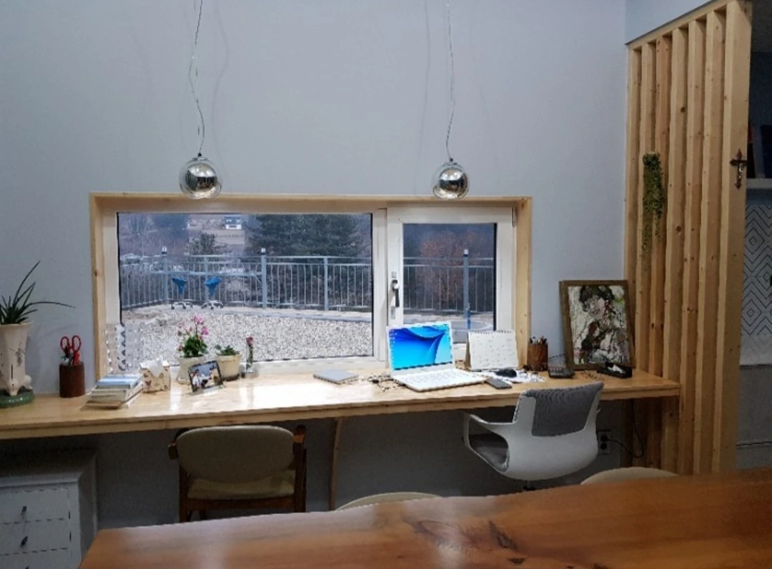 예상대로 하루 중 제일 오랫동안 시간을 보내는 서쪽 창가 넓은 책상.