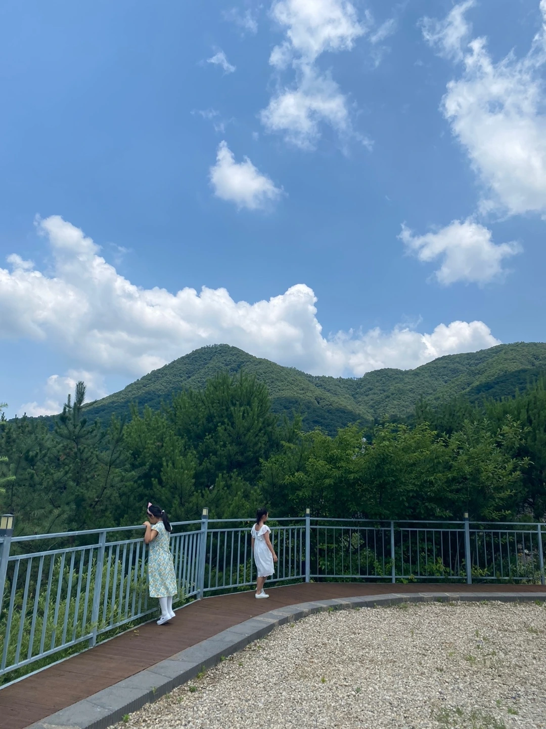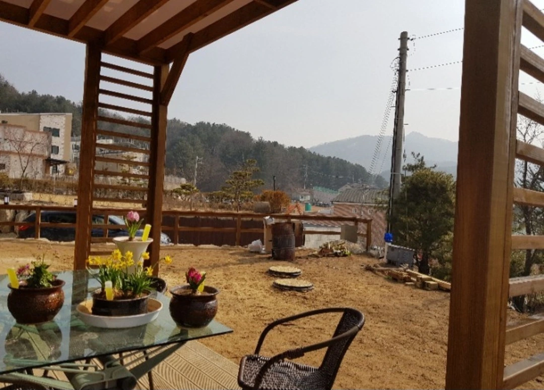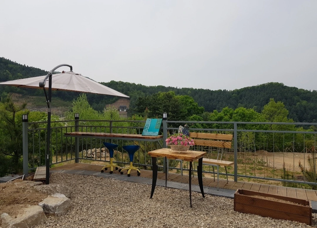 병태가 만들어 준 벤치에 앉아 수다를 떤다.