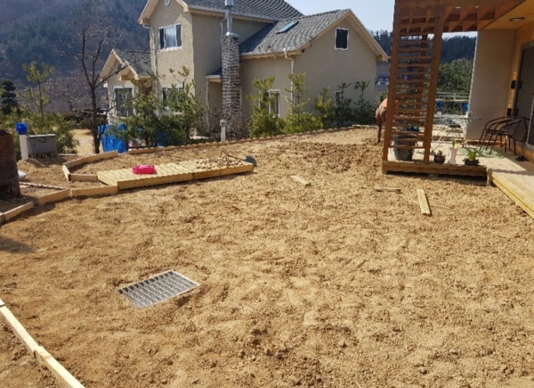 우리 집 앞마당의 제일 큰 문제는 그렇지 않아도 작은 마당의 2/3 쯤 되는 위치에 정화조 뚜껑이 2개씩이나 떡하니 놓여 있는 것. 정화조 설치하는 날 바쁜 일이 있어 참석하지 못한 내 잘못이 크지만 많이 난감했다.