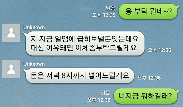 따라잡기가 힘들어지자 합리화 내지는 정신승리 쪽으로 마음을 먹었다. 삭막한 현대사회를 살아가는 한국인의 상식적인 범죄 인식률과 대처법을 믿어 보기로. ‘요즘 같은 세상에 누가 이렇게 뻔한 수작에 낚이겠어? 보이스 피싱, 스미싱, 파밍, 금감원 사칭 이런 게 뉴스에 얼마나 많이 나왔는데. 두메산골 할아버지도 아니고 21세기 정보화 사회의 성인 남녀 중에 이런 어설픈 말에 돈 입금하는 사람은 없겠지…’ 라며 살펴보던 중 뜨악한 메시지를 발견했다.