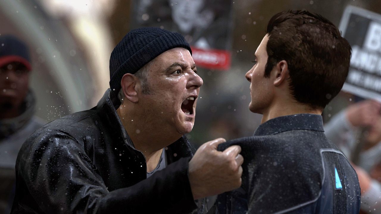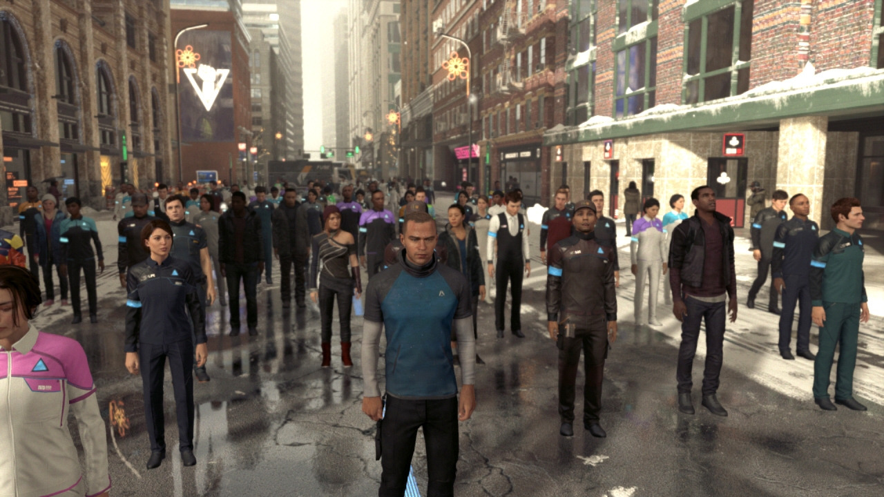 그럼에도 불구하고 스토리의 막바지에 다다르면 많은 생각을 하게 만드는 순간이 온다. 안드로이드의 지도자 마커스가 이끄는 ‘안드로이드 시위대’가 사람들을 상대로 집회를 연다. 광장에 모여서 피켓을 들고 목청껏 구호도 외친다. “우리는 살아있다! 평등한 권리! 안드로이드에게 자유를! 노예 제도를 반대한다!” 평화로운 도보행진 앞에 경찰 병력은 총을 들고 막아선다. 해산명령이 내려지지만 총구 앞에서 마커스는 자리에 가만히 앉아 저항하지 않는다. 인간보다 우월한 신체능력이 있기에 마음만 먹으면 충분히 반격할 수 있는데도. 경찰의 강제해산에 결국 안드로이드들은 모두 구석으로 몰려 몰살당할 위기에 처한다. 불량품이니 폐기처분을 당하는 수순인 것이다. 그 순간, 마커스의 선창으로 안드로이드들은 노래를 부르기 시작한다.