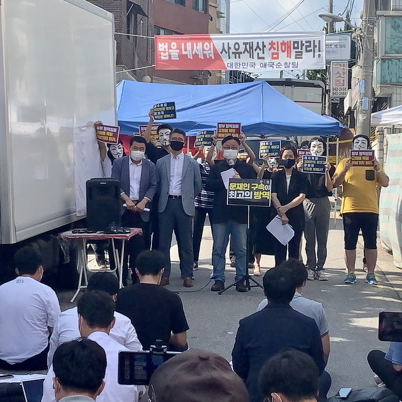 혹시 세월호 가족협의회 아버님들이 단상에 올라온 건가 싶어서 눈을 비비고 다시 쳐다봤다. 분명 사랑제일교회 사람이다. 어안이 벙벙했다. 아니 어디 감히 빼앗아 올 말이 없어서…!? 하루아침에 아이들을 먼 바다로 떠나보낸 부모의 말을, 차디찬 아스팔트에도 아랑곳없이 뜨거운 촛불의 열기와 함께 울려 퍼지던 성난 민중의 말을, 동맹휴학 시국미사 고공농성 1인시위 등 부당한 권력과 싸우는 이들의 곁에서 언제나 힘이 되어준 소중한 말을 사리사욕에 눈이 먼 거짓 선지자들이 무슨 낯으로 가져다 쓴단 말인가.