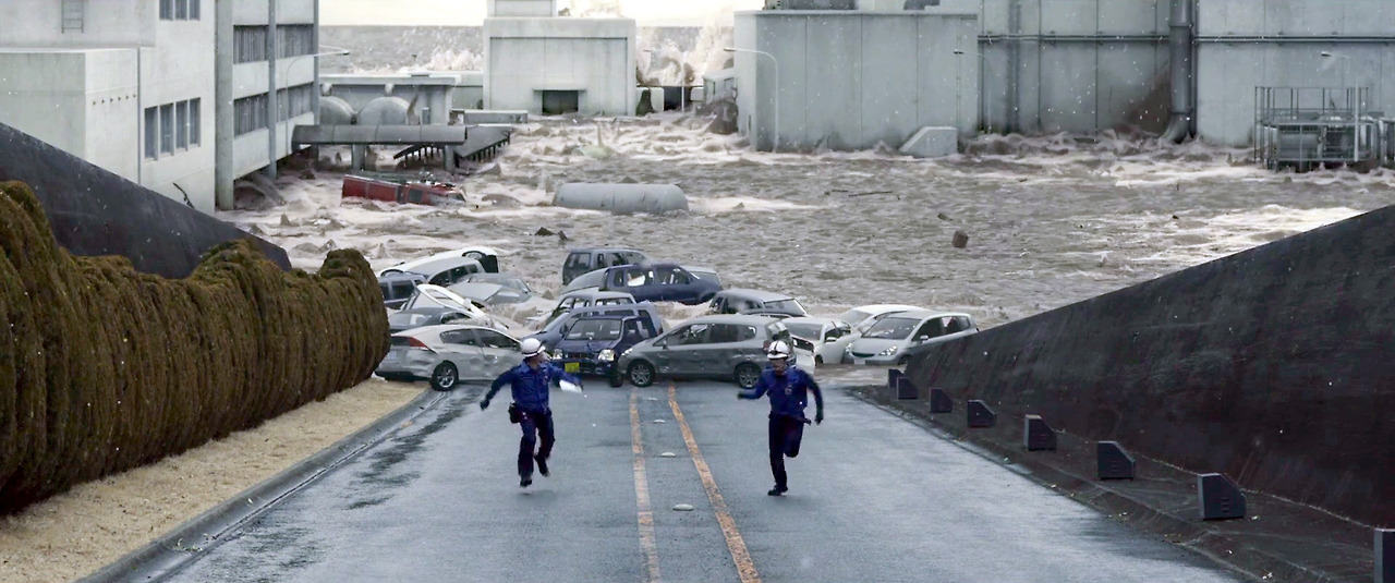 보통이라면 이렇게 행복한 주인공 가족의 일상을 보여주면서 시작하는 게 재난 영화의 기본 흐름일 텐데 이 작품은 다르다. 배경 설정도 인물 소개도 그 어떤 미사여구도 필요 없다. 시작하자마자 대지진이 후쿠시마 원전을 강타하더니 이내 쓰나미가 모든 걸 뒤엎어버리는 절망적인 상황이 벌어지기까지 10분이 채 안 걸린다. 영화 <후쿠시마 50>은 이렇게 급박하게 시작된다.