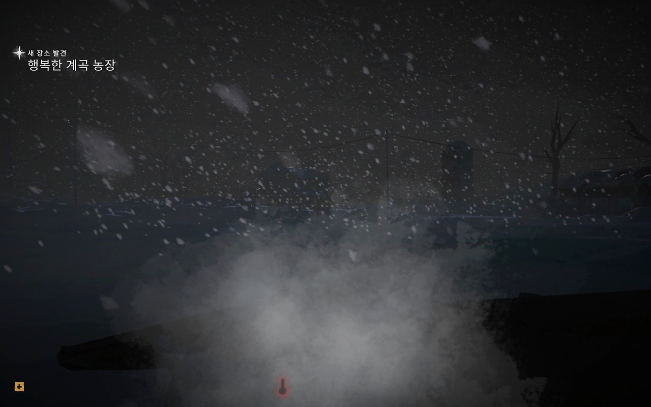 ‘살아남는다’ 라는 서바이벌 게임의 본질을 무서울 정도로 충실히 재현해낸다. 해가 뉘엿뉘엿 지고 나무들이 붉은빛으로 물들기 시작하는 걸 보니 슬슬 숙소로 돌아가는 게 맞지만 패딩까지 홀딱 젖으며 강 건너 힘들게 찾아온 마을 외곽 주유소에는 쓸 만한 땔감과 식료품이 풍부했다. ‘이것만 더 챙기자, 저것도 가지고 가야겠다’ 계속 욕심부리다 황급히 밖으로 나오니 주변은 탁한 어둠이 묵직하게 내려앉아있었다. 어젯밤에는 별과 달이라도 떠있어서 희미한 하늘빛에 의지해 숙소로 되돌아올 수 있었는데 오늘은 구름이 껴서 그런지 별빛 하나 안 보인다.