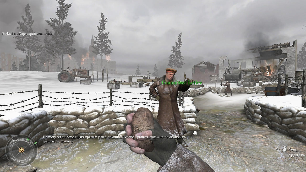 싸우다 보면 내가 바실리인지 바실리가 나인지 모를 정도로 감정이입이 된다. 대부분이 시가전이기에 건물 곳곳에 숨어있는 독일군은 잘 보이지도 않는다. 그 대신 사방에서 들려오는 건 총성과 다급한 독일어 외침들. 어디든 독일어가 들린다 싶으면 일단 그쪽으로 총을 갈기고 본다. 쏘다보면 반대편 건물 창가에 있는 독일군이 내 총에 맞은 것 같기도 하고 아닌 것도 같은 애매한 순간이 온다. 위험하니 섣불리 먼저 나갈 수도 없다. 그 순간 창문 옆으로 희미하게 보이는 입김. ‘이 녀석 아직 살아있구나. 그리고 저 입김이 나는 방향 쪽에 놈의 머리가 있겠구나’ 모신나강의 조준경을 입김 쪽으로 조심스럽게 향한다. 슬금슬금 이쪽을 보기 위해 독일 병사가 고개를 내미는 순간 곧바로 총을 발사한다.