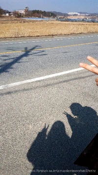 구름 한 점 없이 맑고 밝은 하늘 아래 어울리지 않는 고요에 감탄하던 것도 잠시, 차가워진 머리로 현실을 맞닥뜨린 우리는 곧바로 지도 앱을 열어 하회마을로 가는 길을 찾았다. 다음 버스는 20분 후에 올 것으로 예정되어 있었다. 우리는 살짝 기울어진 표지판과 누군가 쓰다 내놓은 듯한 식탁 의자 하나가 끝인 황량한 정류장에서 20분 동안 기다리는 대신 도보 7분 정도 거리의 다음 정류장까지 걸어가기로 했다. 인적이 드문 곳답게 인도라고 할 만한 길조차 없어서 우리는 아슬아슬하게 찻길 옆의 공간으로 걸어야 했다. 그런 도로에서는 트럭이나 버스 등 큰 차들의 존재감이 특히 압도적이라서 우리는 멀리서부터 무게감이 느껴지는 차 소리가 들려오면 황급히 마른 풀밭 위로 올라서야 했다.