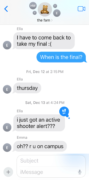 브라운대학에 총기사건이 난 것이다. 무서움에 아이는 화장실에서 꼼짝않은채 6시간을 보냈고, 아직 범인인 잡히지 않아 학교는 shelter in place로 건물 밖으로 나오지 못하는 상황이 되었다.