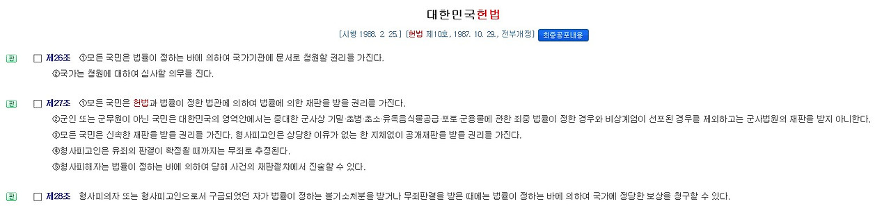 대한민국 헌법 제27조의 내용은 다음과 같다.