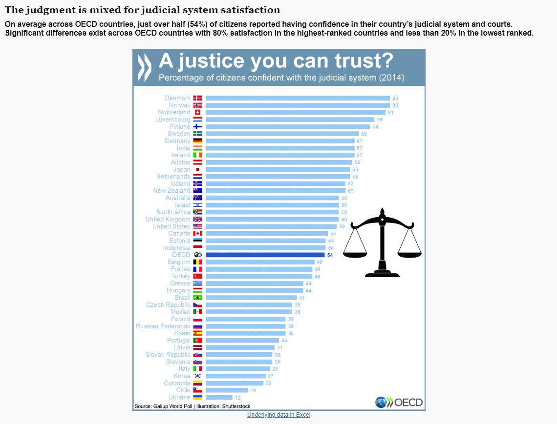 소송을 결심하고, 관련 자료를 찾다 보면 사법부인 ‘대한민국 법원’이 국민에게 다양한 법률 정보를 세세히 제공하기 위해 노력한다는 것을 알 수 있다. 대부분의 대한민국 국민은 사법부의 신뢰를 경험하기보다는 언론보도로 그릇된 모습을 먼저 접하는 경우가 많다. 2015년, 경제협력개발기구(OECD)의 발표 중 ‘사법부에 대한 신뢰도 평가’ 결과를 보면 OECD 회원국 평균은 54%인데, 대한민국은 27%이다.