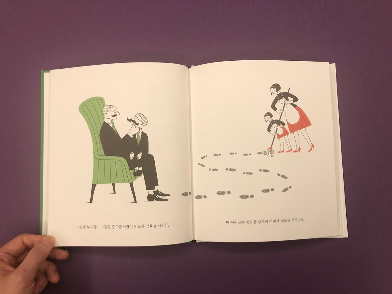 눈물이 그렁그렁 차 오른 아이는 악에 받힌 듯 소리쳤다. 첫 장을 지나 "여자는 남자보다 중요하지 않아 보여요"라는 문장을 읽은 직후였다. 이제 막 8살이 된 소녀의 마음엔 어떤 응어리가 있었던 걸까.