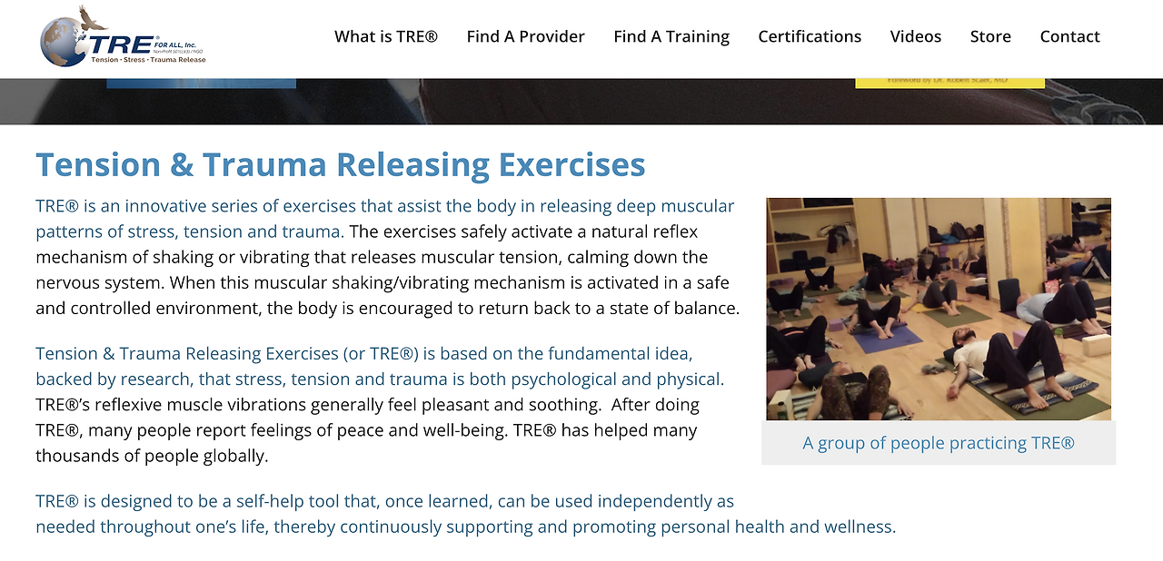 미국 국립생명공학 정보센터(NCBI)에서는 심신 요법을 "심신 상호작용에 대한 지식을 기반으로 하는 치료 방법 또는 기법"이라고 설명한다. 이러한 기법은 스트레스로 인한 긴장감과 영향을 줄이고 개인의 생리적, 심리적 웰빙을 향상시키는 데 사용할 수 있다."고 했다. 따라서 미국에서는 이미 현대인의 과각성과 긴장으로 인한 질병의 케어방법으로 심신중재요법을 차용하고 있는 추세다. TRE®는 이러한 중재 요법 중에서도 자율신경계의 다미주신경에 영향을 주는 신체 본연의 움직임을 통해 중추신경계와 체내 호르몬의 안정화를 통해 트라우마나 긴장에 따른 신체경직을 해소시키는 효과가 있다.