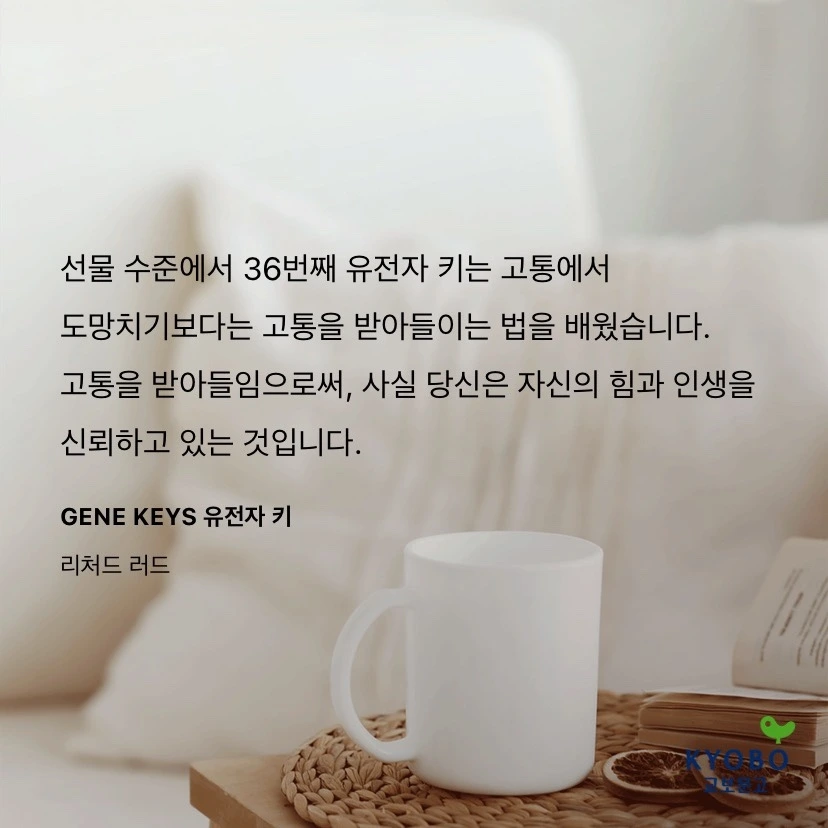 선물 수준에서 36번째 유전자 키는 고통에서 도망치기보다는 고통을 받아들이는 법을 배웠습니다. 고통을 받아들임으로써 사실 당신은 자신의 힘과 인생을 신뢰하고 있는 것입니다.