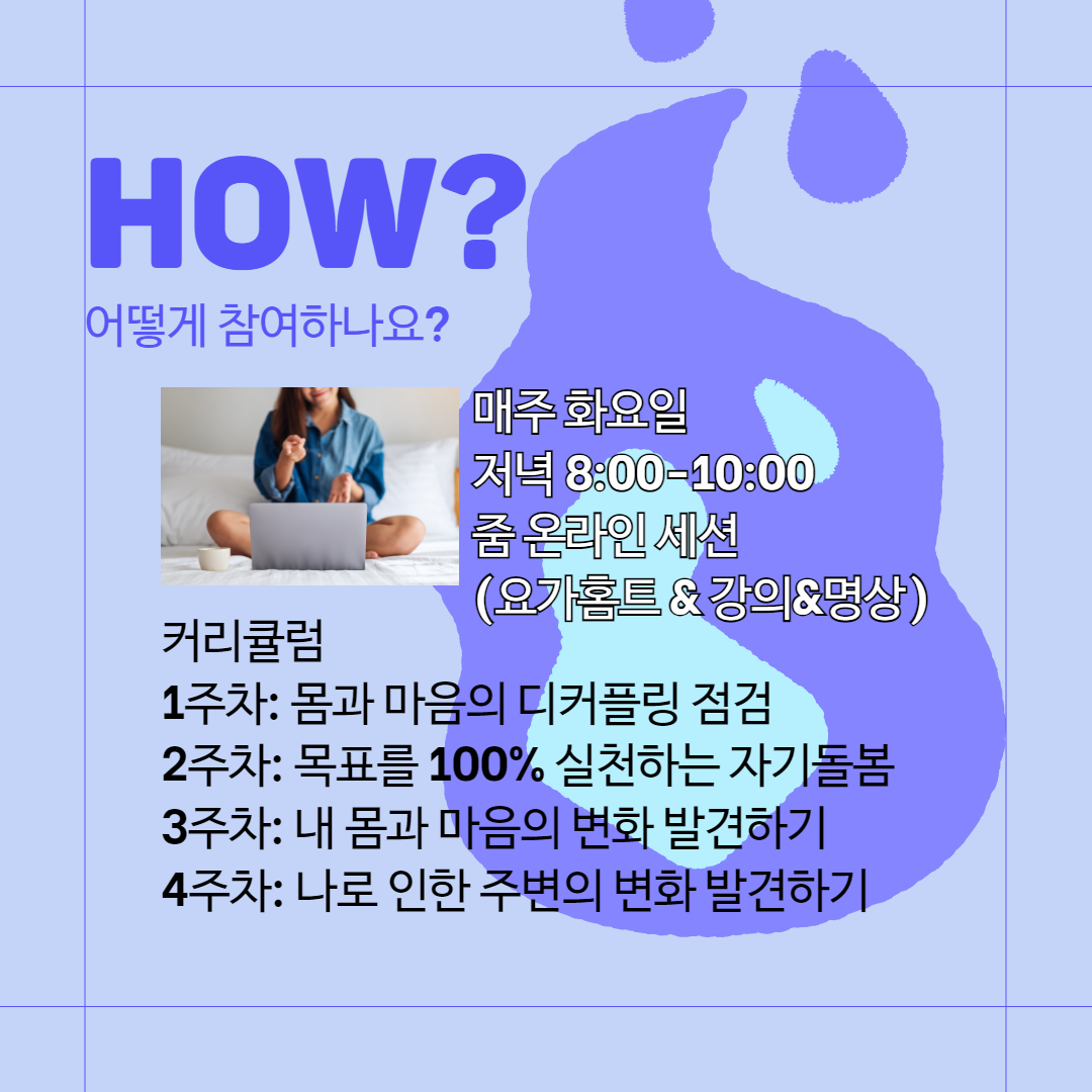 이후 매주 화요일 저녁 20:00-22:00 줌으로 온라인 홈트 & 세션
