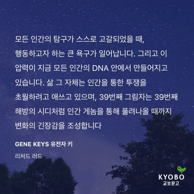 모든 인간의 탐구가 스스로 고갈되었을 때, 행동하고자 하는 큰 욕구가 일어납니다. 그리고 이 압력이 지금 모든 인간의 DNA 안에서 만들어지고 있습니다. 삶 그 자체는 인간을 통한 투쟁을 초월하려고 애쓰고 있으며, 39번째 그림자는 39번째 해방의 시디처럼 인간 게놈을 통해 풀려나올 때까지 변화의 긴장감을 조성합니다.