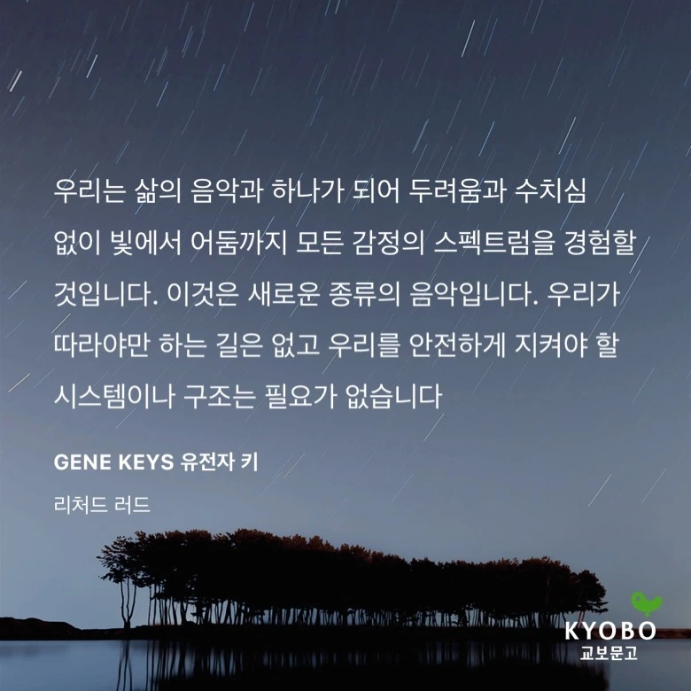 우리는 삶의 음악과 하나가 되어 두려움과 수치심 없이 빛에서 어둠까지 모든 감정의 스펙트럼을 경험할 것입니다. 이것은 새로운 종류의 음악입니다. 우리가 따라야만 하는 길은 없고 우리를 안전하게 지켜야 할 시스템이나 구조는 필요가 없습니다