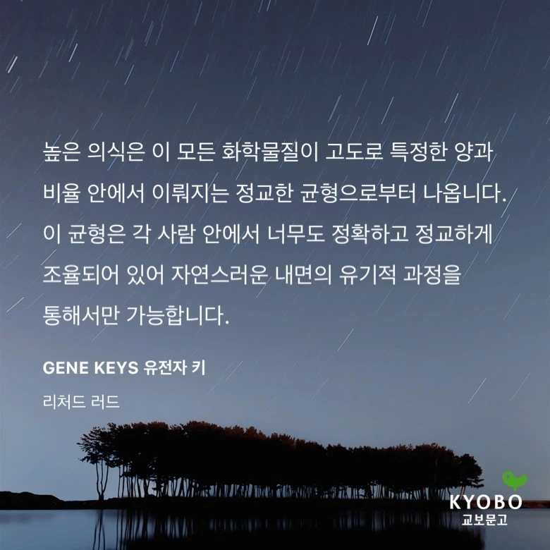 높은 의식은 이 모든 화학물질이 고도로 특정한 양과 비율 안에서 이뤄지는 정교한 균형으로부터 나옵니다. 이 균형은 각 사람 안에서 너무도 정확하고 정교하게 조율되어 있어 자연스러운 내면의 유기적 과정을 통해서만 가능합니다.