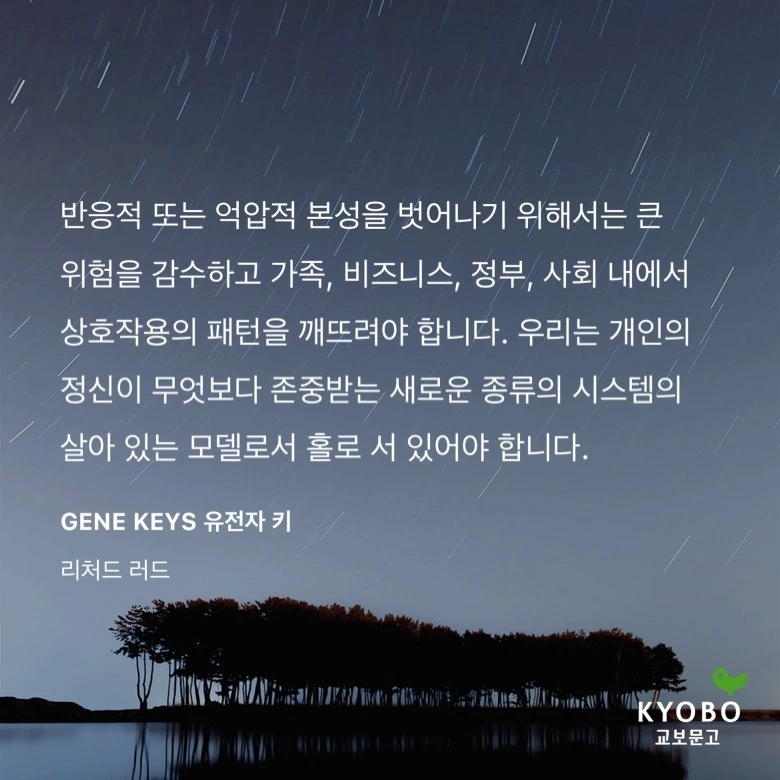 반응적 또는 억압적 본성을 벗어나기 위해서는 큰 위험을 감수하고 가족, 비즈니스, 정부, 사회 내에서 상호작용의 패턴을 깨뜨려야 합니다. 우리는 개인의 정신이 무엇보다 존중받는 새로운 종류의 시스템의 살아 있는 모델로서 홀로 서 있어야 합니다.