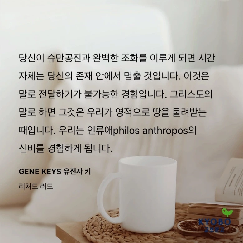 당신이 슈만공진과 완벽한 조화를 이루게 되면 시간 자체는 당신의 존재 안에서 멈출 것입니다. 이것은 말로 전달하기가 불가능한 경험입니다. 그리스도의 말로 하면 그것은 우리가 영적으로 땅을 물려받는 때입니다. 우리는 인류애 philos anthropos의 신비를 경험하게 됩니다.