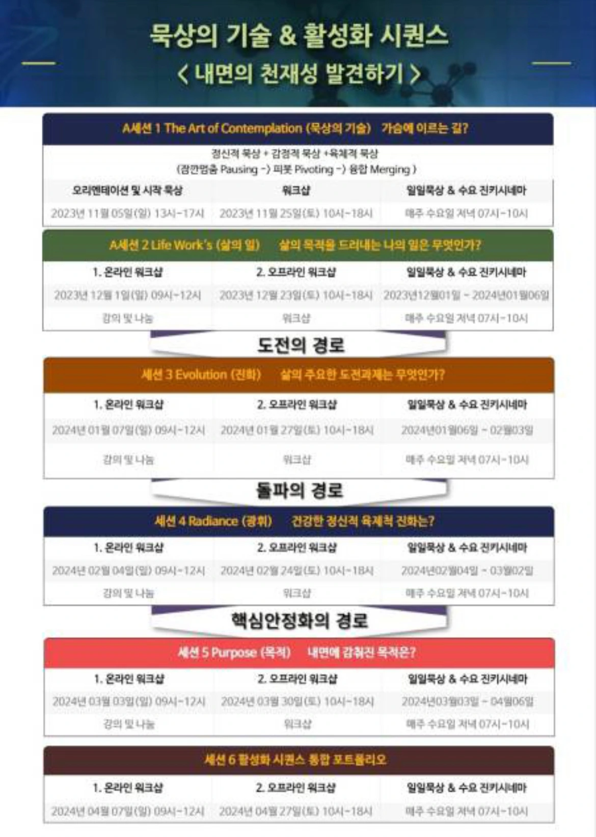 이내 나는 진키네트워크에서 진행하는 골든패스 프로그램에 들어가게 되었다. 뭐가 뭔지는 모르지만 나는 <묵상의 기술> 에만 관심이 있었어서, A 세션만 따로 들어가려고 했는데, 후속과정에 대한 이해가 없었기에 제한적으로 신청하려 했던 것이다. 묵상의 기술 수업을 듣기로 결정하고 나서, 진행자인 마이클교수님을 찾아뵙고 상담을 하면서 리처드 러드의 진키 핵심철학과 교과과정, 그리고 묵상하고자 하는 욕구를 들여다보며 이건 묵상으로 끝날 것이 아니다 싶은 느낌이 들었다. 조금 더 깊이 들어가 보고 싶었다. 다만 아쉬운 것은 주머니 사정이 문제. 사정에 맞게 혹시 분납이 가능한지를 여쭈어 보았는데, 교수님께서는 흔쾌히 응낙하셨다.