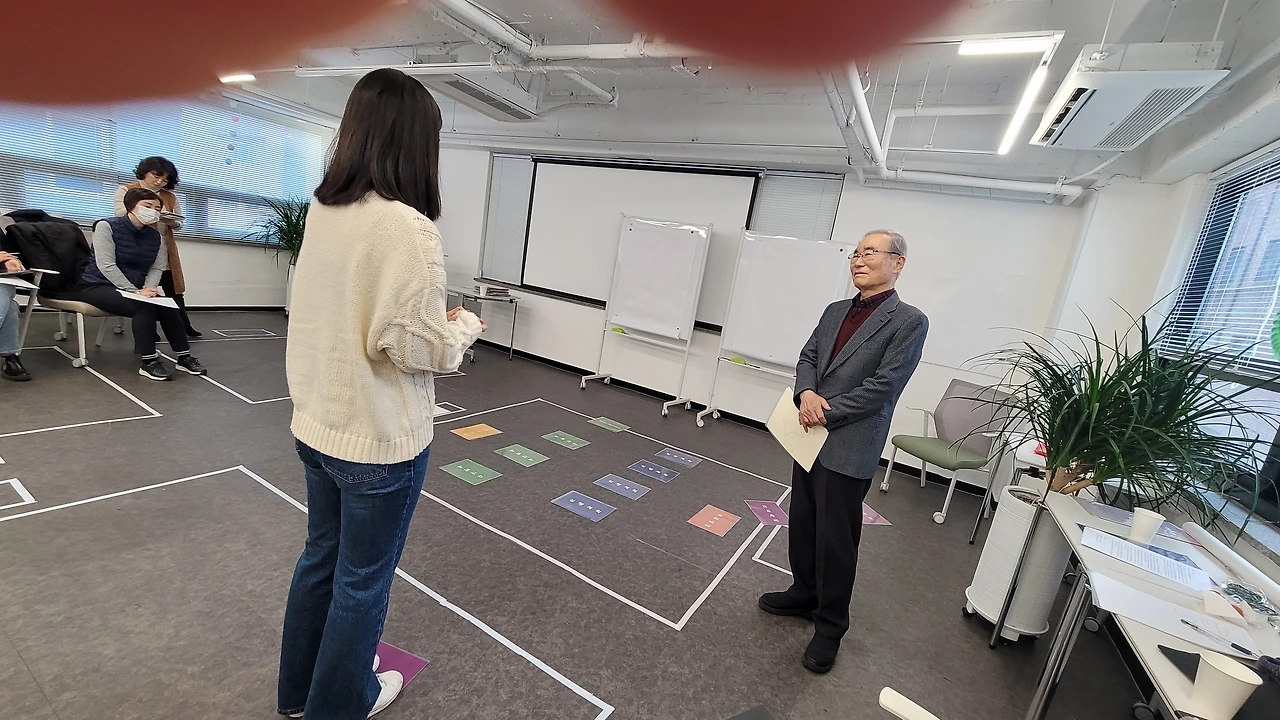 교육장 바닥에 마스킹 테이프로 붙여놓은 사각형과 코치님이 제시하는 프로세스의 카드를 하나하나 밟아나가며, 사실은 진로에 대한 고민은 지원 요청을 하는 나 스스로에 대한 확신을 보다 공고히 하는 것이라는 걸 알게 됐다. 부모님께 학비를 청하는 여정은 불효자 프레임에 빠져버리는 나 그림자를 마주하는 작업이 되겠지만, 그럼에도 불구하고 부모님께 도움을 청해야만 한다면, 나는 해외에서 의사 면허를 따고자 유학의 길로 향하는 내 자신에 존재적 확신을 공고히 해야 했다.