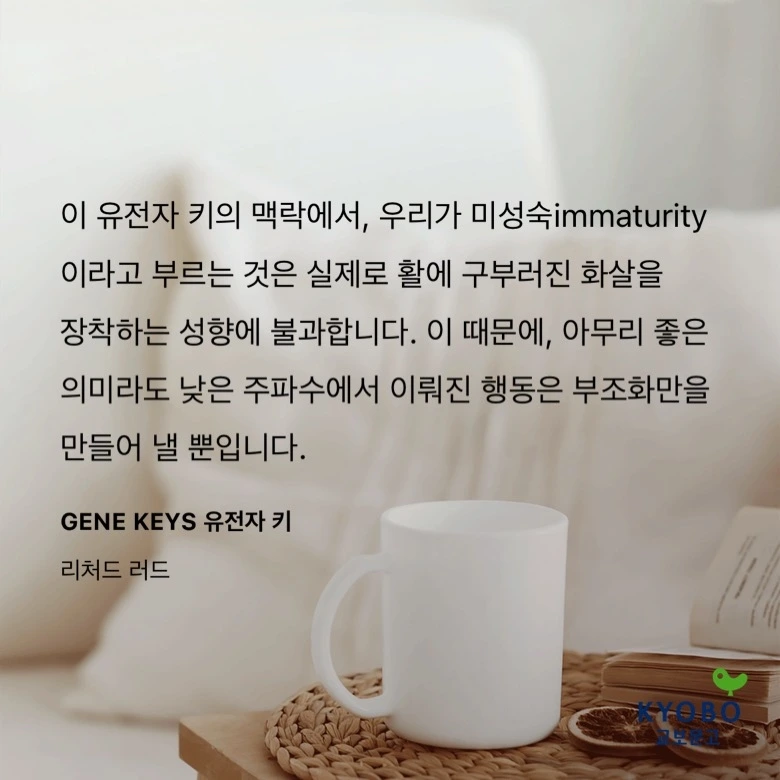 이 유전자 키의 맥락에서, 우리가 미성숙 immaturity이라고 부르는 것은 실제로 활에 구부러진 화살을 장착하는 성향에 불과합니다. 이 때문에, 아무리 좋은 의미라도 낮은 주파수에서 이뤄진 행동은 부조화만을 만들어 낼 뿐입니다.