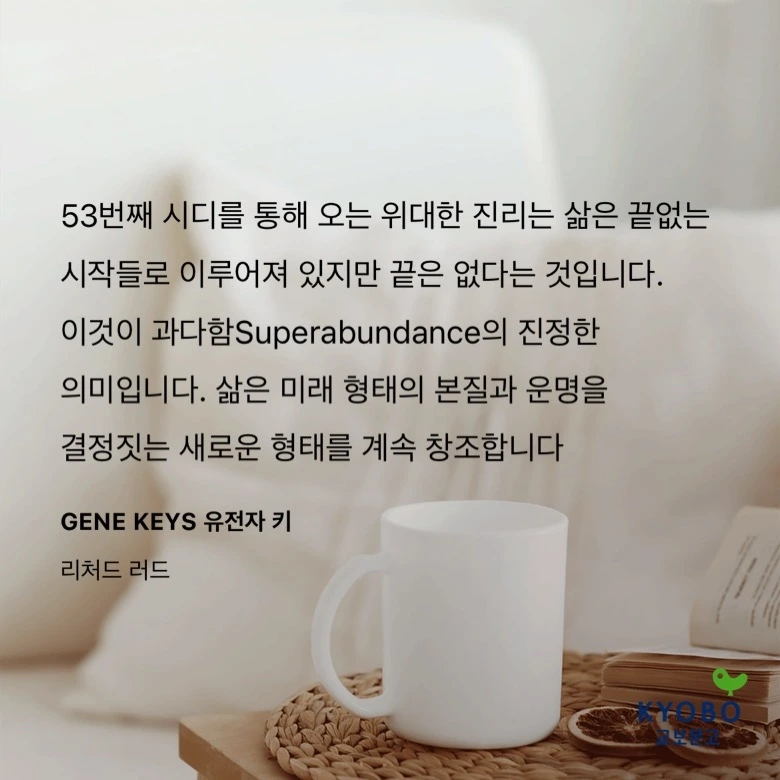 내가 아는 나보다 더 큰 나이기에, 내가 아는 면보다 더 많은 면이 내재하고 있는 나이기에, 내가 누군지 규정짓지 않더라도 삶이 이끄는 나로 살아갈 항복의 자세를 준비하고서 53번 유전자키의 그림자 미성숙의 계곡을 건너 확장의 국면으로 들어선다. 그것이 비록 숱하게 반복되어 온 과다함의 하나라 할지라도. 과다한 나들의 밖에서 끝내 하나의 의식으로 합일되는 여정에 있다고 믿으면서.