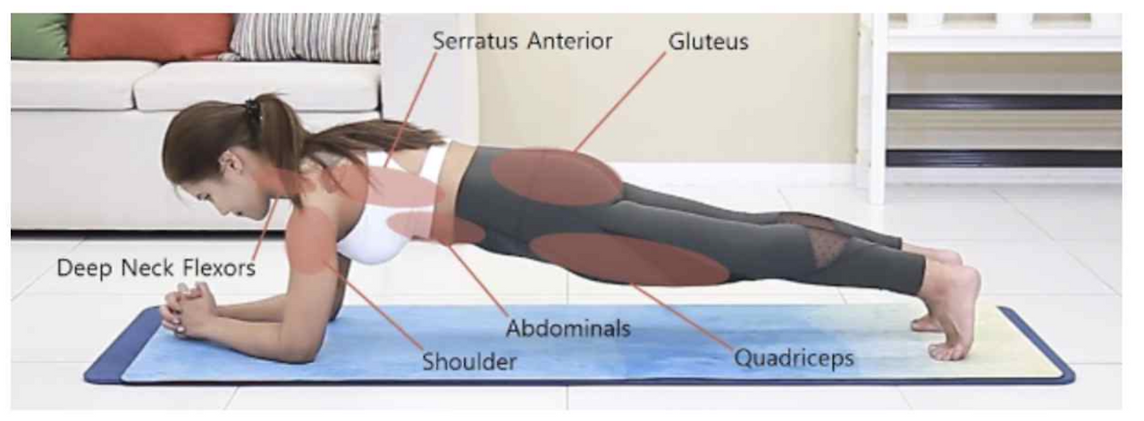 초보자라면 10초씩 여러 세트를 해 봅니다. 억지로 버티다 바르지 못한 자세로 운동하면 부상 이 생길 수 있어요! 플랭크는 단순한 동작에 비해 난이도가 상당히 높은 운동이에요. 억지로 버티는 것보다 바른 자세를 지키는 데 더욱 신경 써보세요!
