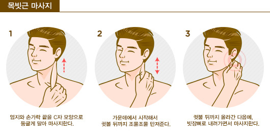 1. 턱을 목 쪽으로 살짝 당긴 상태에서 엄지와 검지로 잡고 목과 턱 사이 작은 볼펜을 꽉 조인다고 생각하면서 조금 더 턱을 당겨봅니다.