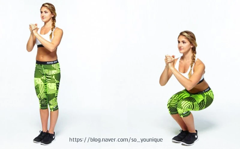 준비물: 편안한 신발(운동화), (굽 높은 신발이라면 무릎에 하중이 실릴 수 있으므로 지양) 주변의 여건에 따라 내로우스쾃, 와이드스쾃, 미니스쾃를 번갈아 해 본다면 허벅지와 엉덩이의 자극이 골고루 되어 하체 근력을 다양하게 강화할 수 있습니다.