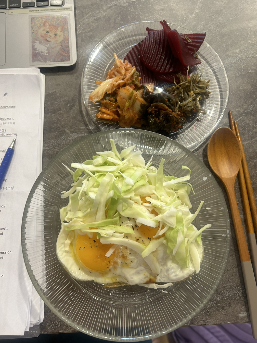 Tonight’s dinner was “market toast.” I made an egg scramble with plenty of cabbage, spread jam and cream cheese on both slices of bread, added low-sugar ketchup on the eggs, and used xylitol instead of sugar. This market toast is as good as the ones from Namdaemun Market.
