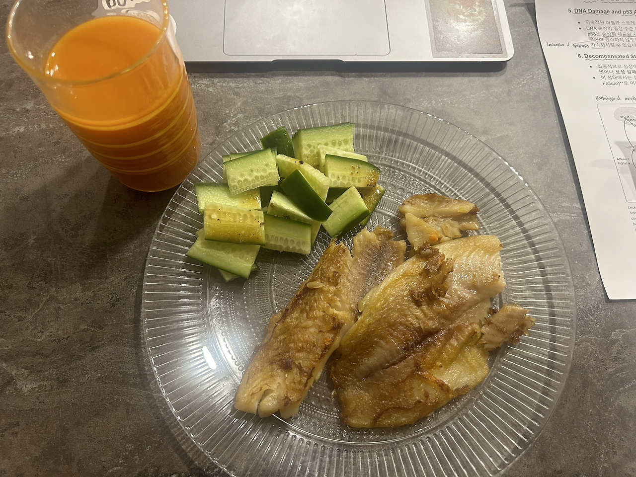 점심이나 저녁은 밥을 해서, 채소와 단백질이 골고루 들어가게 조합한다. 김자반, 참치, 생선류, 계란이 주로 등장하는 반찬이다. 가끔은 통밀빵을 굽고 채소와 함께 부친 계란부침을 끼워 넣는다. 과자나 초콜릿 등은 원래 좋아하지 않았는데, 밤늦도록 공부하다보면 당이 당길 때가 있다. 이때 굳이 참으면 잠을 이기기 어렵다. 영양이 보충되야 공부도 한다고 느껴 작은 큐브초콜릿을 한두개 먹는다. 적당한 달콤함으로 정신을 깨우는 느낌도 참 좋다.